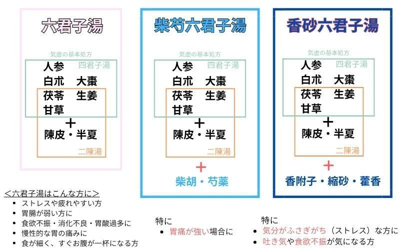 「柴芍六君子湯」と「香砂六君子湯」の違い